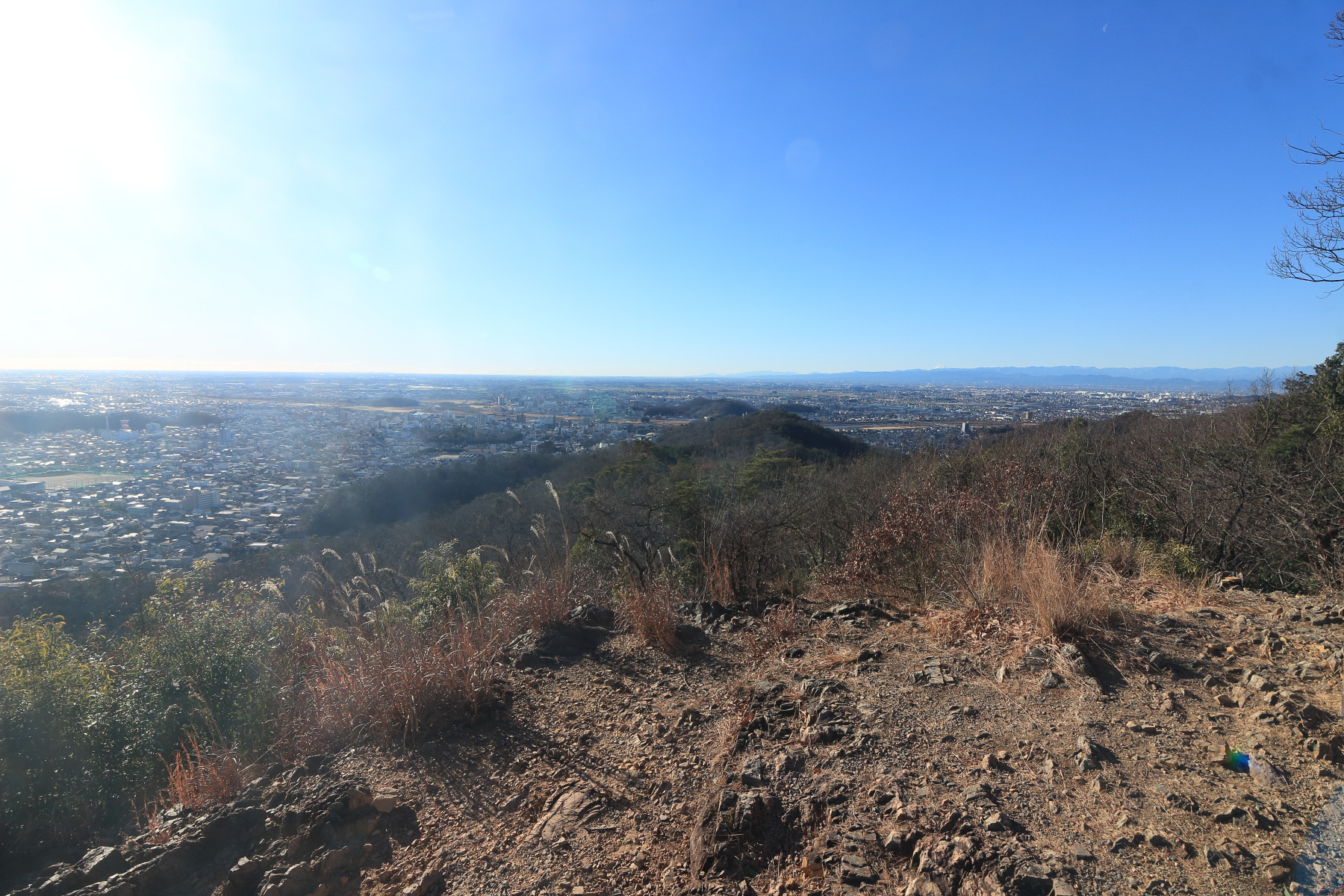 パッとしない山頂ばかりでしたので、結局いつもの定番の日和田山南部の眺望です。 今日も人が多かったです。山頂の気温は 2℃ で、この時期にしては暖かめ。 |