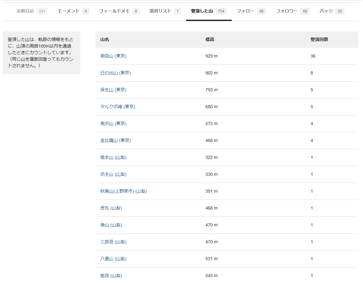 話は変わって、YAMAP で去年の山行の総括が AI で生成されていました。