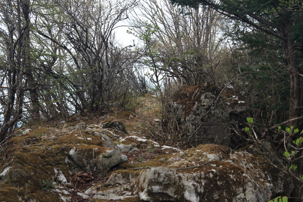 このあたりはガレ場。捻挫しないよう慎重に登ります。 Canon EOS Kiss X7 EF-S24mm f/2.8 STM 24mm(38mm) ISO 1600 F5.6 1/80s |