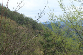 尾根歩きはここまで。ここから左の谷底まで 200m ぐらい下ります(10:06)。 Canon EOS Kiss X7 EF-S24mm f/2.8 STM 24mm(38mm) ISO 100 F3.5 1/60s |