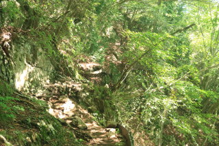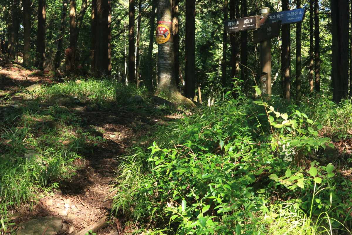 さらに分岐です。御岳山への巻き道を右に分け、左の大岳山登頂ルートに進みます(8:39)。 Canon EOS Kiss X7 EF-S24mm f/2.8 STM 24mm(38mm) ISO 100 F3.2 1/50s |