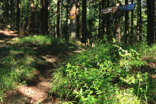 御岳ビジターセンター付近の分岐。 右の下山ルートではなく、左の富士峰園地に進みます。 Canon EOS Kiss X7 EF-S24mm f/2.8 STM 24mm(38mm) ISO 100 F7.1 1/200s |