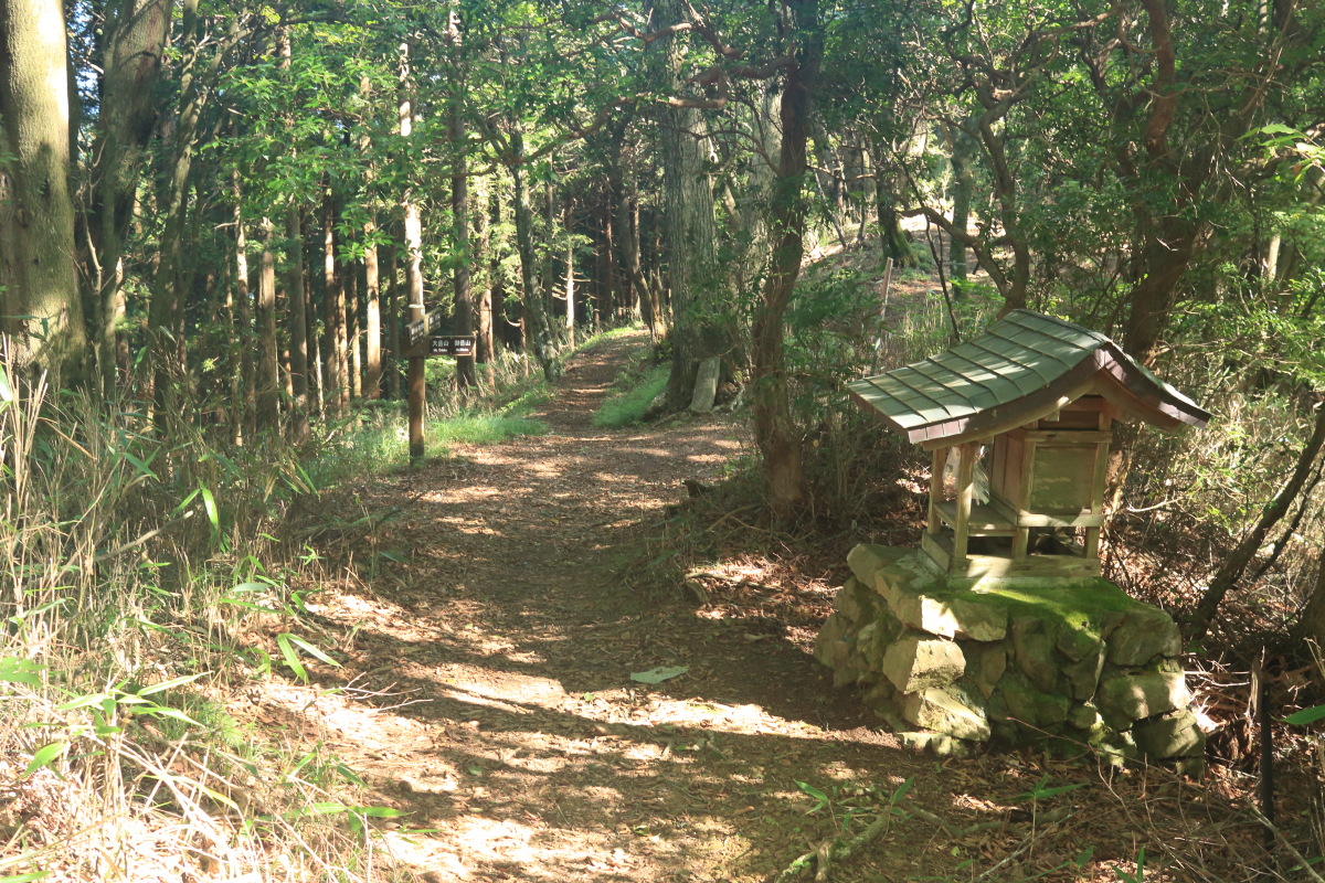 車道歩きはここまで、ここで左の登山道に入ります(7:25)。 Canon EOS Kiss X7 EF-S24mm f/2.8 STM 24mm(38mm) ISO 320 F5.6 1/80s |
