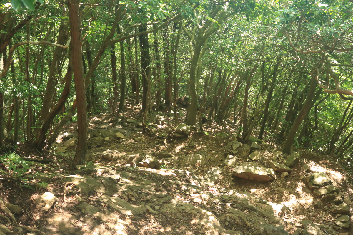 石垣が出てきました。 路は険しくなりますが、尾根はもうすぐです。 Canon EOS Kiss X7 EF-S24mm f/2.8 STM 24mm(38mm) ISO 1600 F5.6 1/80s |