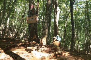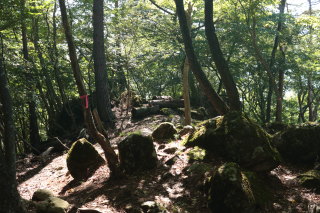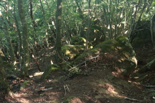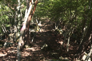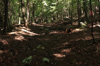 岩堂峠に戻ります。おおむね歩きやすい登山道でしたが、所々荒れていて、また倒木も多数ありました。