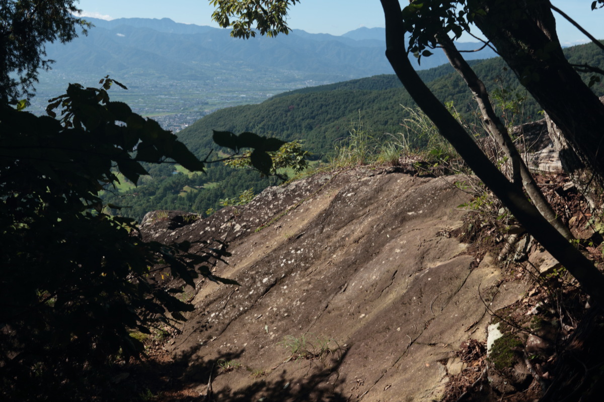 岩場になりました。写真ではわかりにくいですが、鉛直に近い急斜面です。