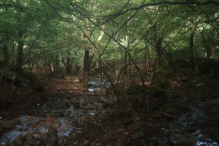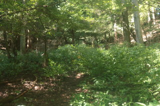 小川を渡ると、そこから岩堂峠まで上りなのですが、道が見当たりません。 小川でカメラを濡らしてしまったためか、写真が曇っています。