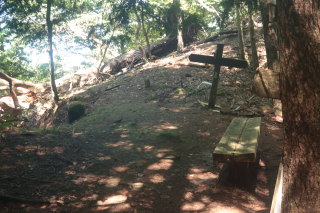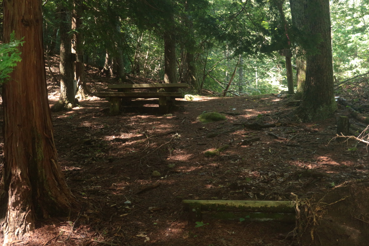 岩堂峠(912m)到着(9:52)。ベンチが見えたときはホッとしました。 道を見失った時の人工物は、本当にありがたいです。