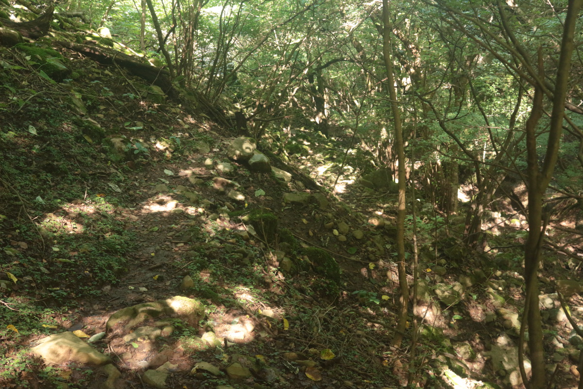 かつては階段だったんだろうなぁ、という道ですが、ほぼ崩壊しています。