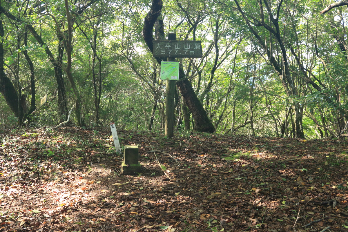 大平山の西側の最高地点(592m)通過(8:55)。ここから下ります。 Canon EOS Kiss X7 EF-S24mm f/2.8 STM 24mm(38mm) ISO 160 F5.6 1/80s |