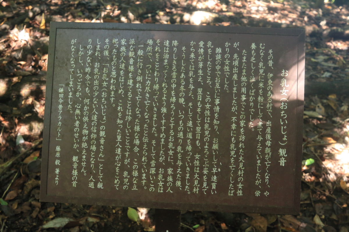 なんか石像がありました。右には説明文が。 お乳女(おちいじょ)観音 Canon EOS Kiss X7 EF-S24mm f/2.8 STM 24mm(38mm) ISO 1600 F5.6 1/80s |