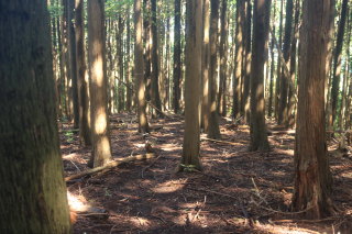 途中で数百メートルだけ人工林を通ります。 虫も見当たらず、蜘蛛の巣も全くありませんでした。 歩きやすい点は良いですが、人工林ってやっぱ山という感じがしません。 Canon EOS Kiss X7 EF-S24mm f/2.8 STM 24mm(38mm) ISO 320 F2.8 1/40s |