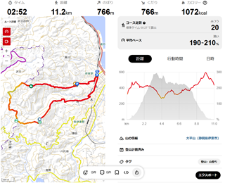 YAMAPのデータです。 ちょっと楽過ぎました。物足りなかったです。 |