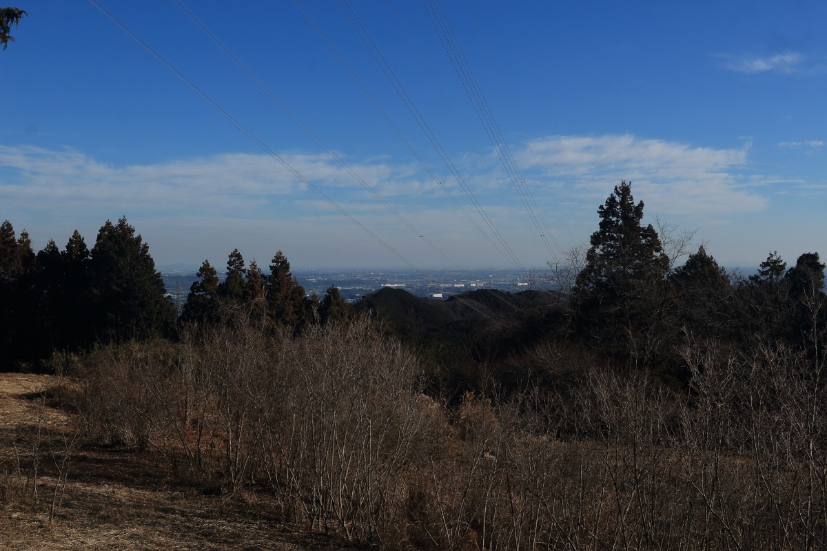 木の隙間から越生方面が見えました。 右側に、さっき登った石尊山が見えています。 Canon EOS Kiss X7 EF-S24mm f/2.8 STM 24mm(38mm) ISO 100 F8.0 1/250s |