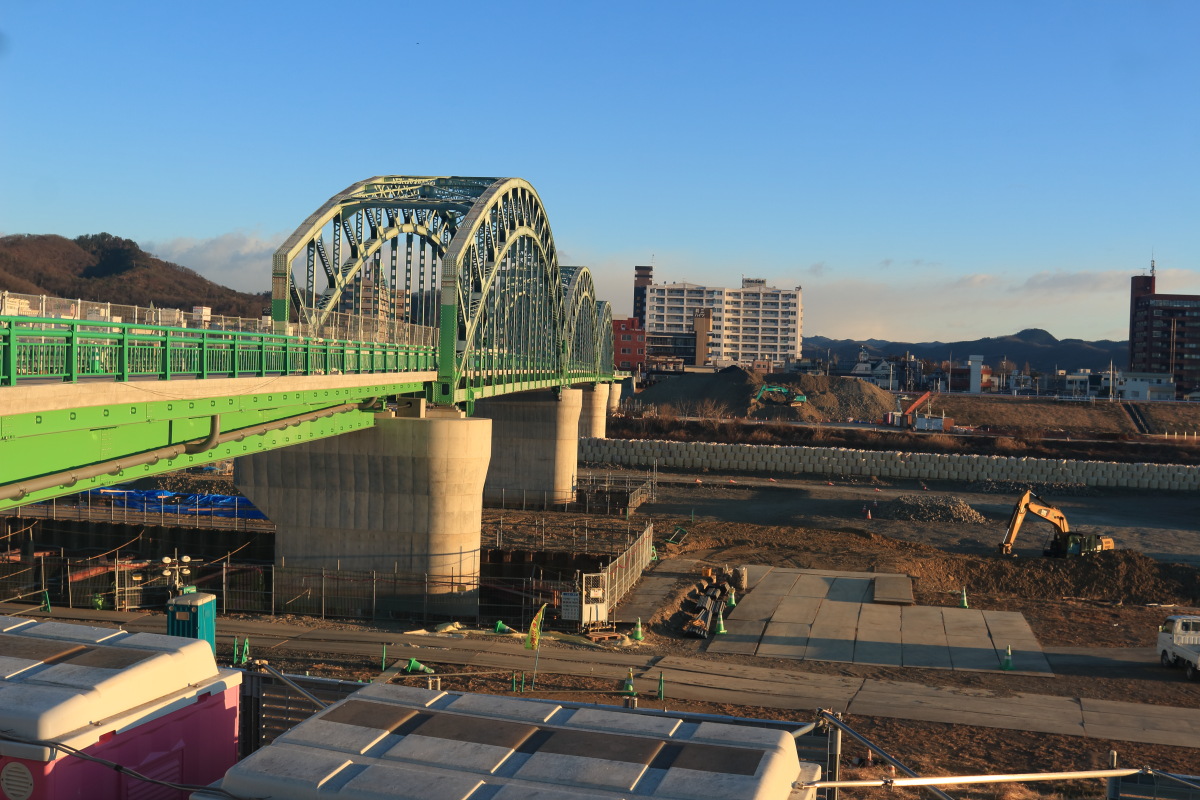 仮設橋とは思えない、しっかりした橋です。 Canon EOS Kiss X7 EF-S24mm f/2.8 STM 24mm(38mm) ISO 100 F5.6 1/125s |
