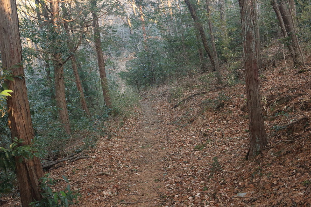 南北をつらぬる縦走路に合流しました(標高238m, 8:22)。 合流地点に温度計がありました。2℃です。 Canon EOS Kiss X7 EF-S24mm f/2.8 STM 24mm(38mm) ISO 100 F7.1 1/200s |