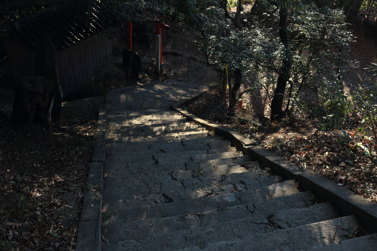 階段を上りきると神社がありました。 Canon EOS Kiss X7 EF-S24mm f/2.8 STM 24mm(38mm) ISO 1000 F5.6 1/80s |