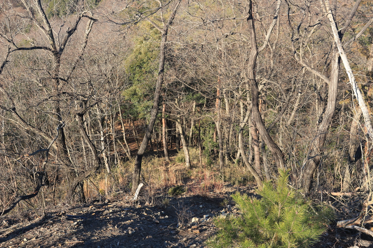 ザレた坂を下って行きます。 Canon EOS Kiss X7 EF-S24mm f/2.8 STM 24mm(38mm) ISO 100 F6.3 1/160s |