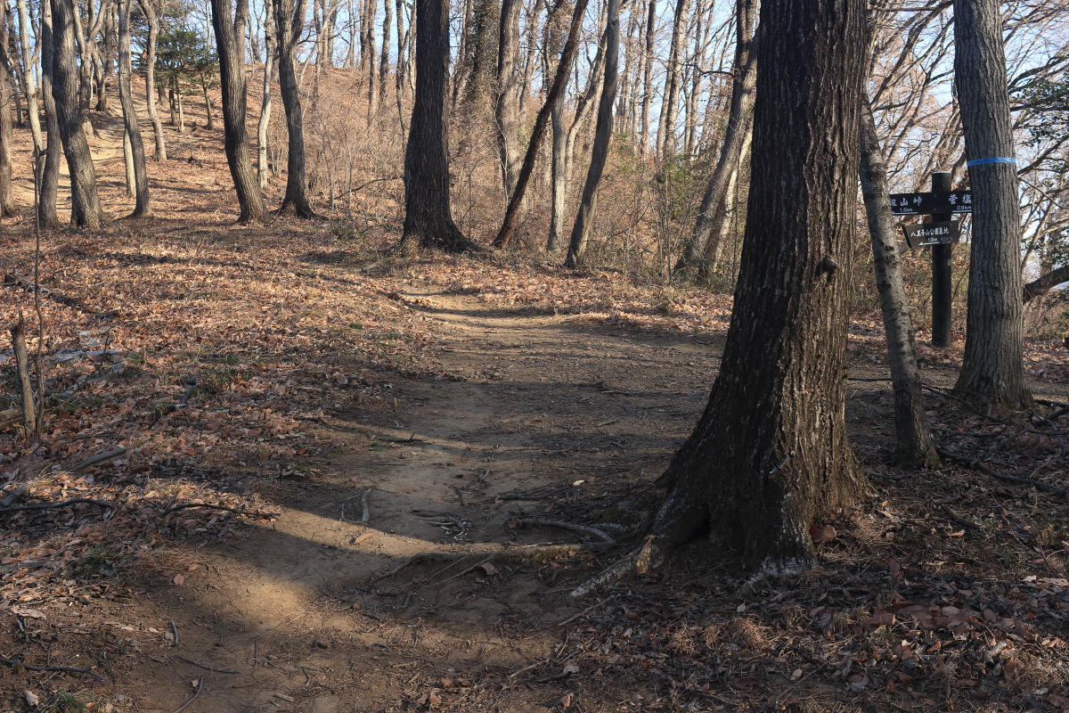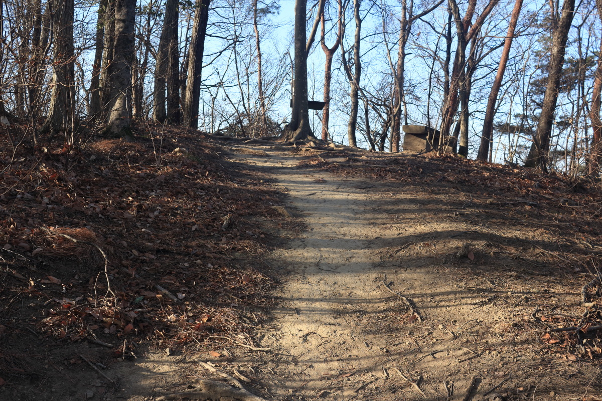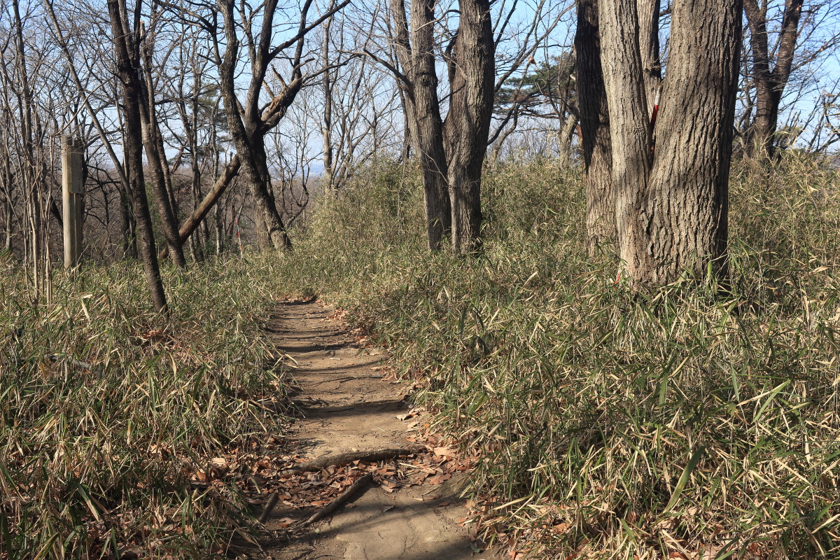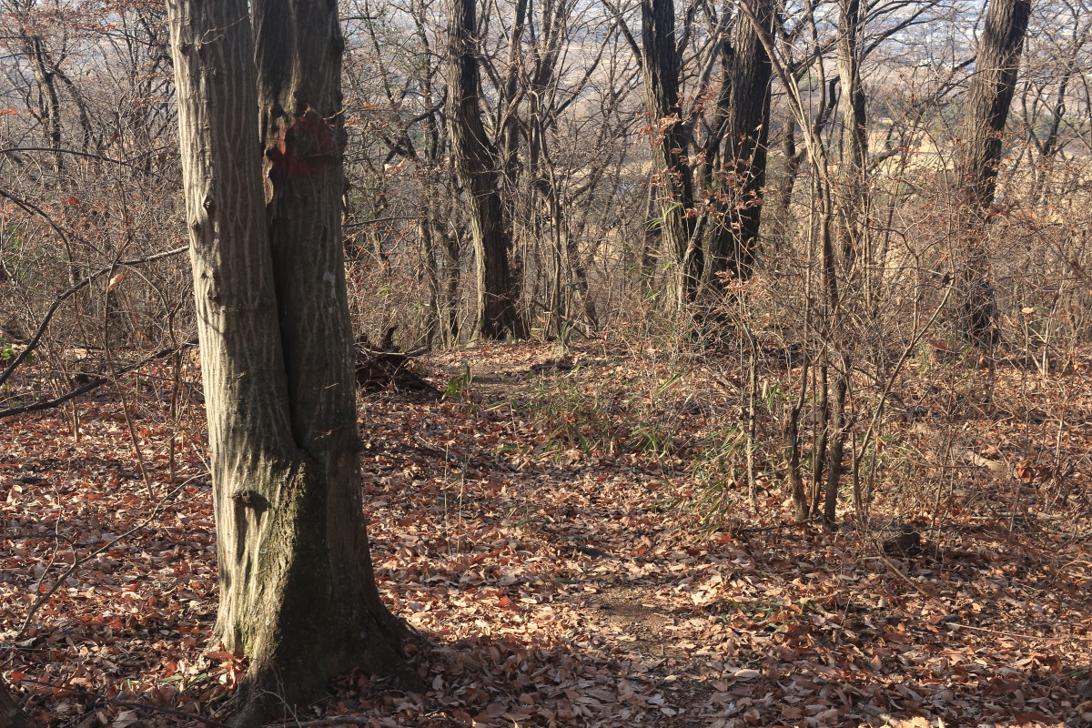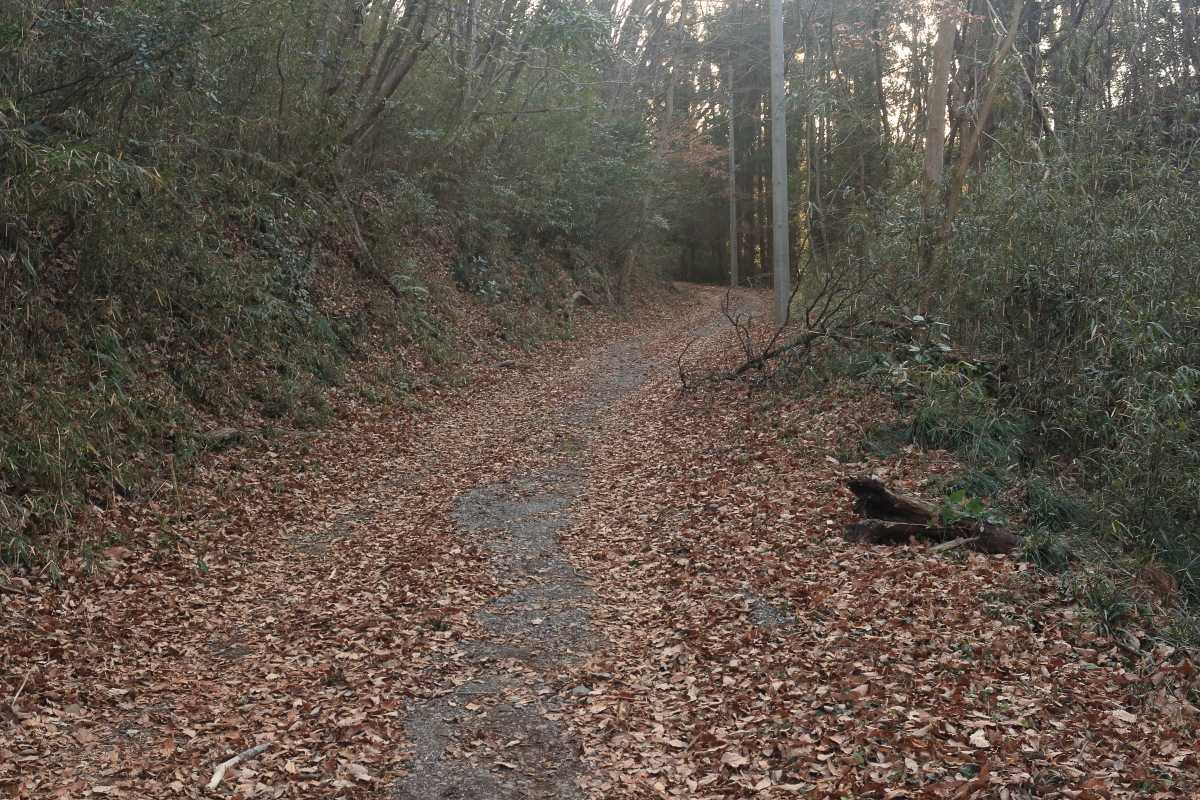 下ってきました(208m)。 左前方に進みたくなりますが、天王山は右上です。 Canon EOS Kiss X7 EF-S24mm f/2.8 STM 24mm(38mm) ISO 100 F4.5 1/80s |