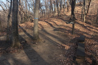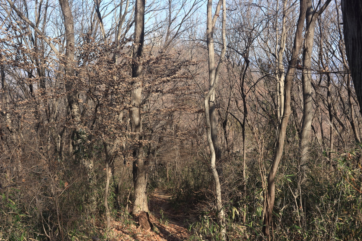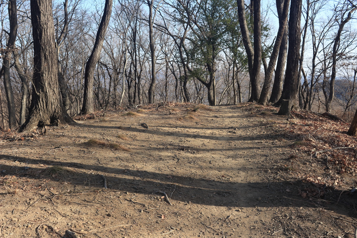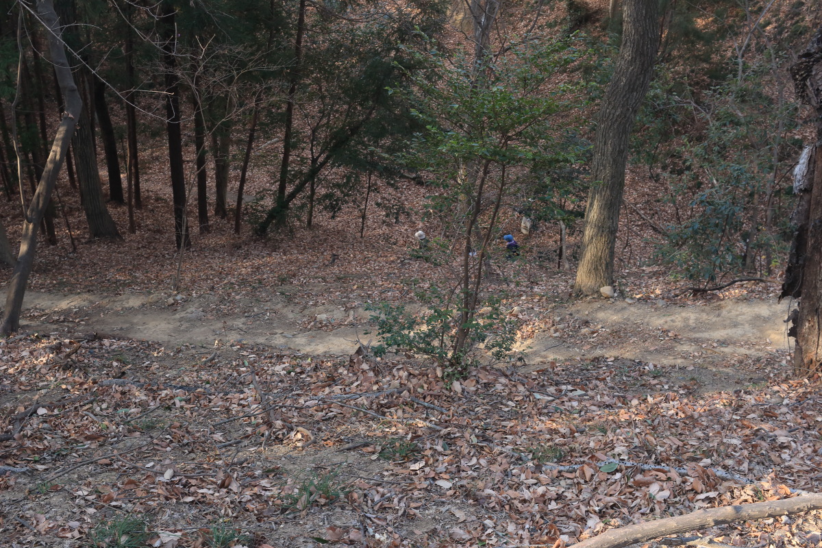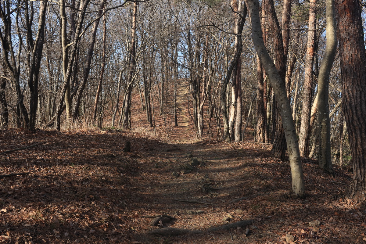 下ってきました(208m)。 左前方に進みたくなりますが、天王山は右上です。 Canon EOS Kiss X7 EF-S24mm f/2.8 STM 24mm(38mm) ISO 100 F4.5 1/80s |