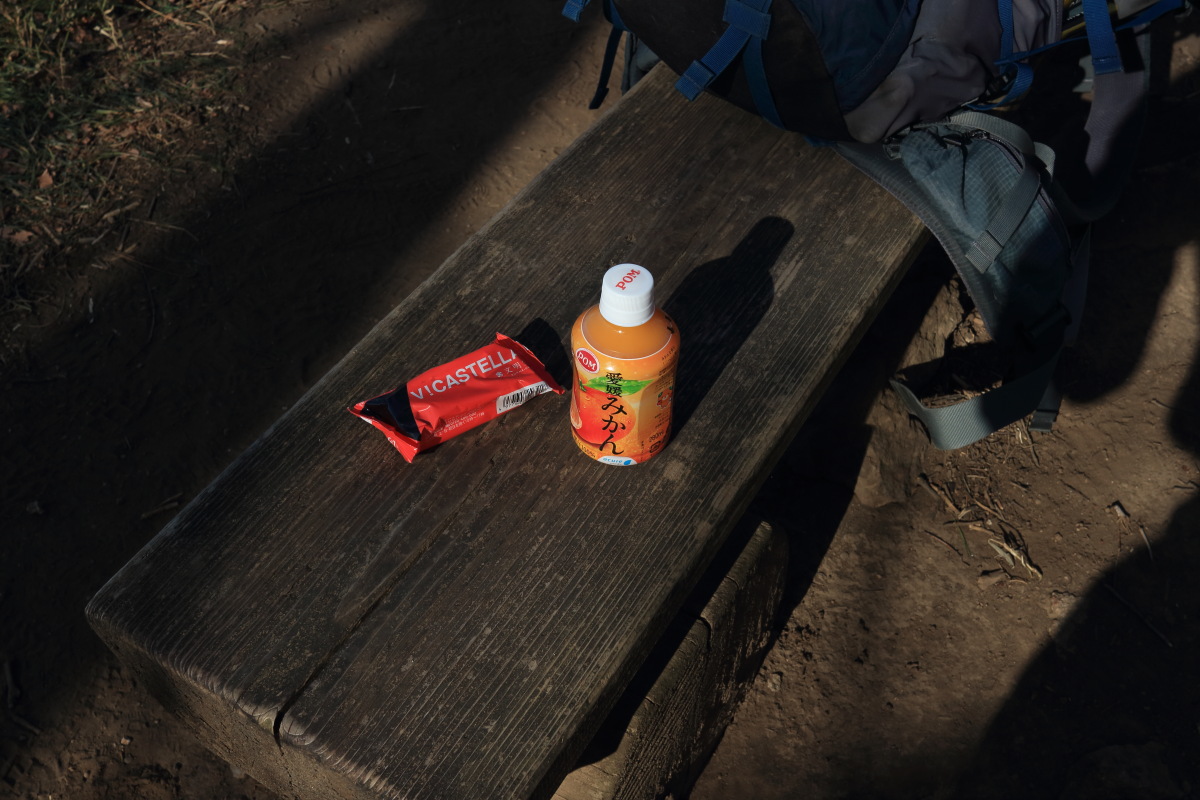 2時間以上歩き続けておなかが空いたので、ここでカステラとみかんジュースで5分ほど休憩しました。