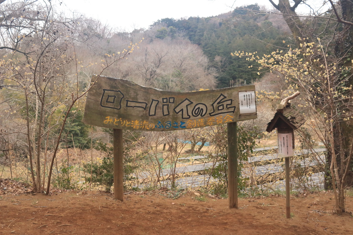 ロウバイ園の看板です。背景の太陽光パネルが残念。 Canon EOS Kiss X7 EF-S24mm f/2.8 STM 24mm(38mm) ISO 1600 F5.6 1/80s |