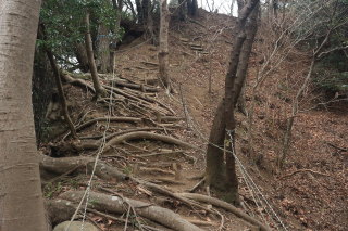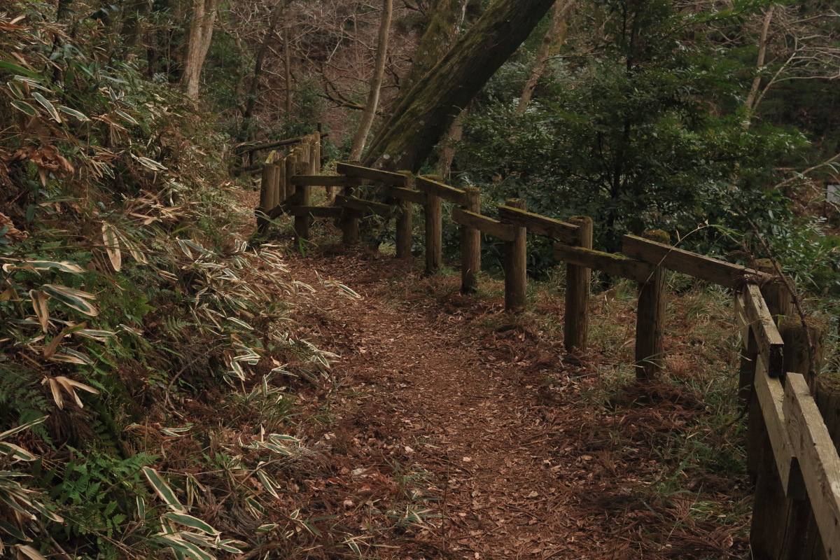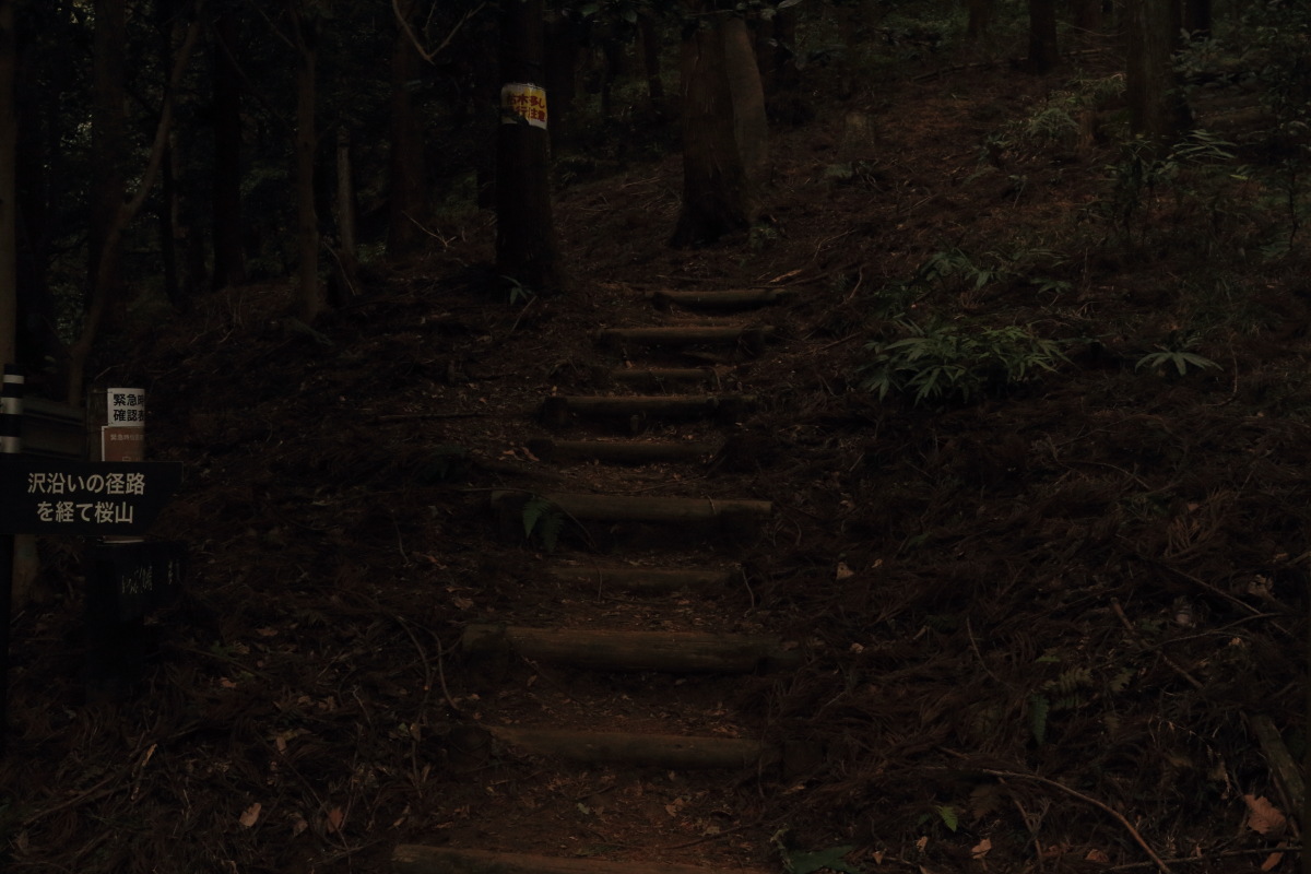神社の裏から、普通の登山道になります。 そこそこ急ではありましたが、段差の小さな階段のおかげで、脚への負荷が小さいので助かります。 Canon EOS Kiss X7 EF-S24mm f/2.8 STM 24mm(38mm) ISO 1250 F5.6 1/80s |