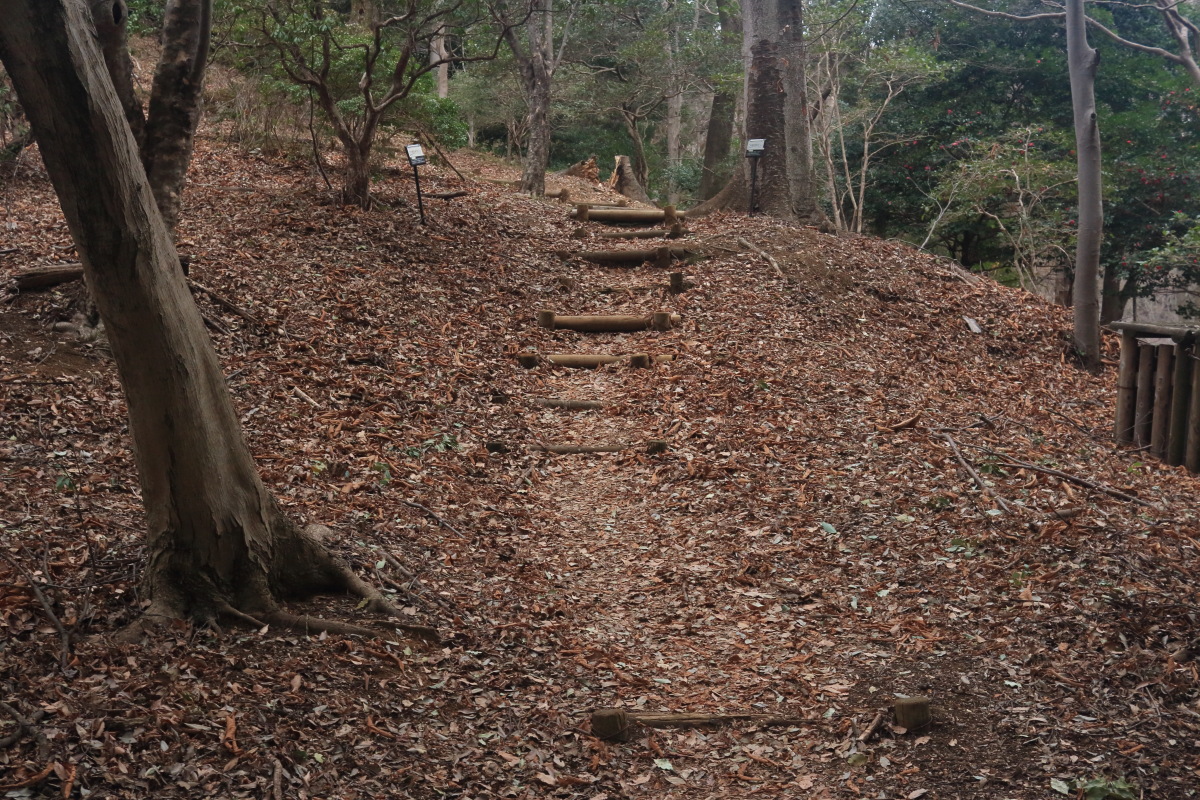 順礼峠(191m)到着(8:44)。 右に見えている下り階段は通行止めでした。 Canon EOS Kiss X7 EF-S24mm f/2.8 STM 24mm(38mm) ISO 160 F5.6 1/80s |