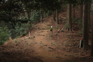分岐に到着(振り返って撮影 7:40)。これから進む道は右側の桜山方面です。 Canon EOS Kiss X7 EF-S24mm f/2.8 STM 24mm(38mm) ISO 640 F5.6 1/80s |