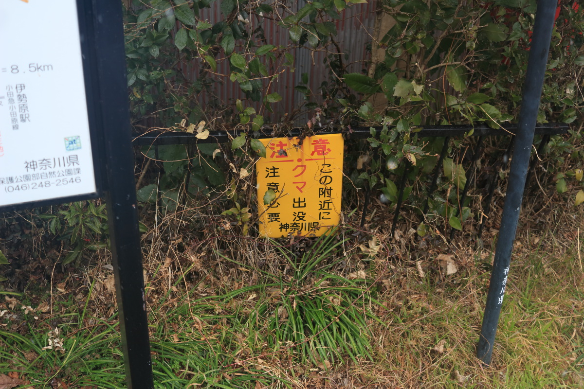 バス停到着(10:01)。意外に近かったです。 関東ふれあいの道 日本語が微妙なクマ看板、山梨県専用かと思ったら、神奈川県にもありました。 Canon EOS Kiss X7 EF-S24mm f/2.8 STM 24mm(38mm) ISO 100 F5.0 1/100s |