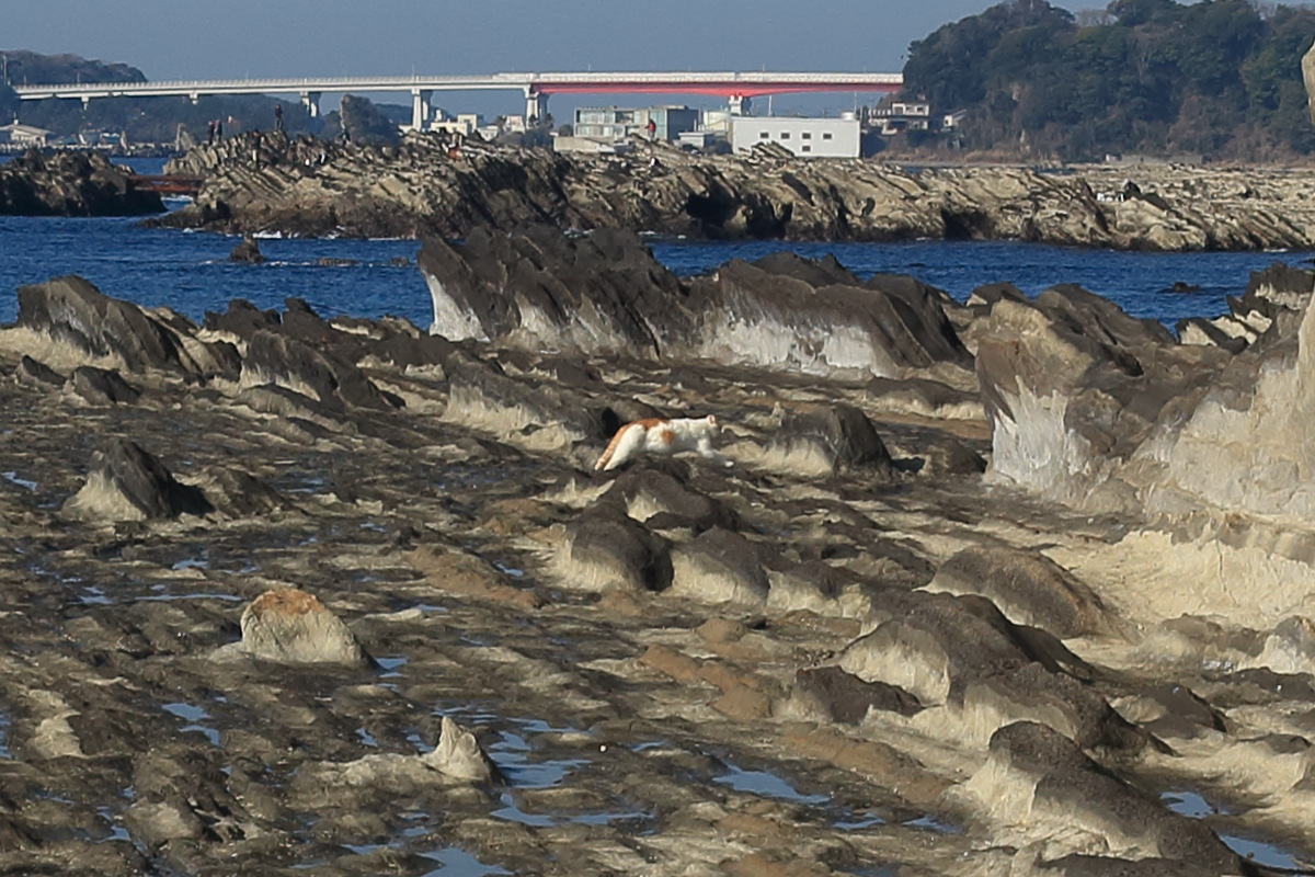 岩礁歩きはいったん終了(8:19)。 ここからしばらく車道歩きです。 Canon EOS Kiss X7 EF-S24mm f/2.8 STM 24mm(38mm) ISO 100 F10.0 1/400s |