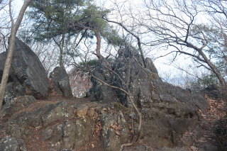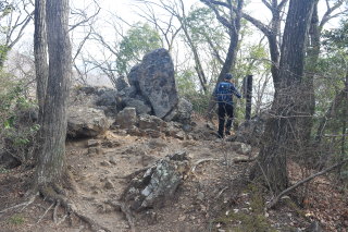 城山のピークです。巨石のモニュメントがあります。