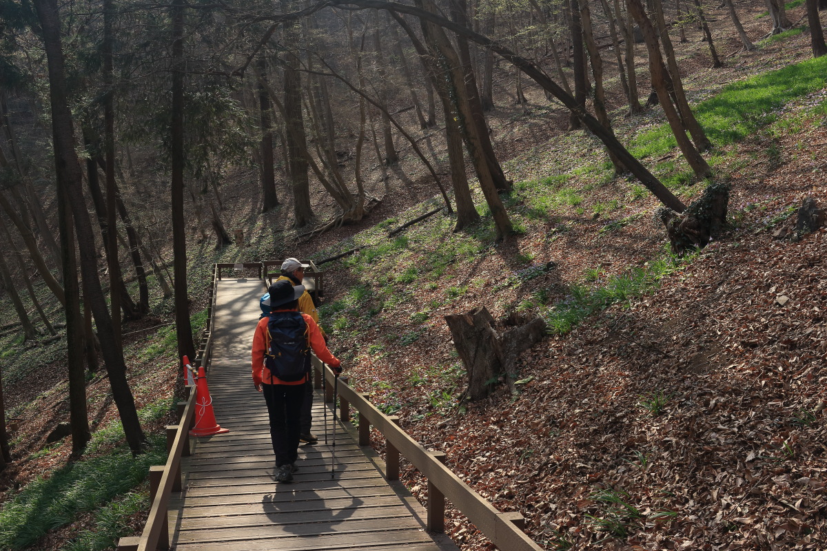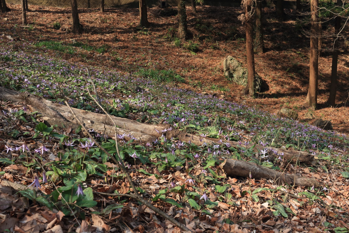 カタクリがいっぱいの斜面を下って行きます。 Canon EOS Kiss X7 EF-S24mm f/2.8 STM 24mm(38mm) ISO 100 F5.6 1/125s |